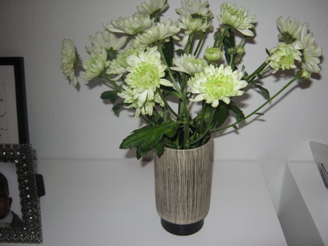 Denne lille sort/hvide vase blev min for det fyrstelige sum af 10 kr!! Den er jo nærmest trendy og passer perfekt til en lille buket på reolen